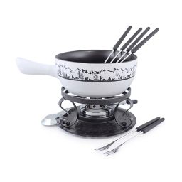 The porcelain insert needs to be placed inside the stainless steel pot along with enough water to fill the base of the stainless steel pot but just below the porcelain insert. All clad 59936 stainless steel fondue pot with ceramic insert cookware silver swissmar f66706 sierra 1 6 quart cast iron meat fondue set 11 piece deep blue nostalgia fps200 6 cup stainless steel electric fondue pot with temperature control 6 color coded forks and removable pot perfect for chocolate caramel cheese sauces and more. This covered fondue pot with ceramic insert is constructed of heavy gauge 18 10 stainless steel and perfect for entertaining. The 3 quart stainless steel pot holds the oil or broth while the 2 quart ceramic insert is for melted fondues such as cheese or chocolate.